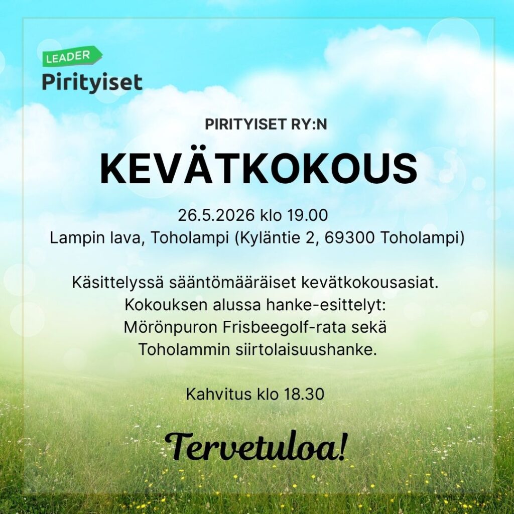 Kokousmateriaalit ovat jaossa kokouspaikalla sekä pyydettäessä Pirityisten toimistolta.